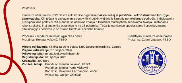 Informacije Združenje oftalmologov Slovenije Grablovičeva 46 1000 Ljubljana Slovenija Tel:+386 1 522 19 00 Fax: +386 1 522 19 60 E: zos.szd@gmail.com S: www.zos-szd.si Pridružite se nam