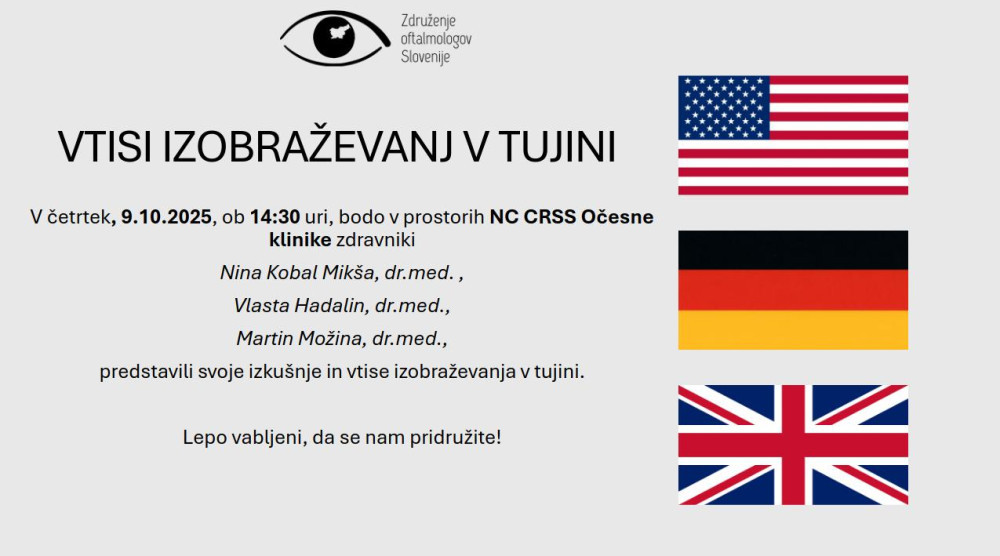 V četrtek, 9.10.2025, ob 14:30 uri, bodo v prostorih NC CRSS Očesne klinike zdravniki